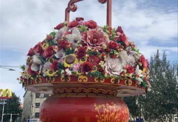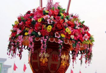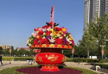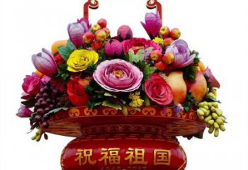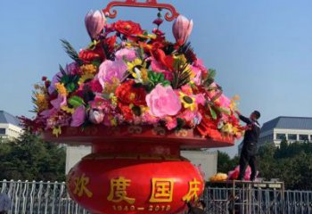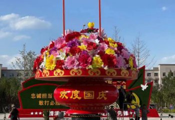 慶祝國慶節彩繪仿真大花籃雕塑