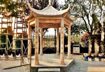 仿古涼亭,擺放在庭院里,欣賞美麗晚霞,營造休閑小區紅色氛圍
