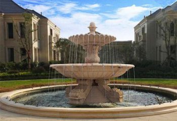 精美紅石雕晚霞別墅小區裝飾噴泉擺件