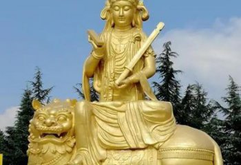 玻璃鋼文殊菩薩騎獅子雕塑