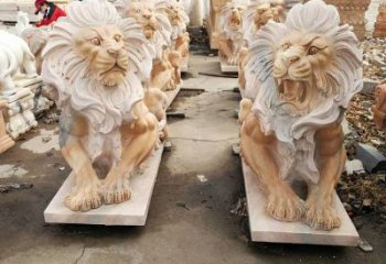 大理石石雕獅子雕塑,點綴晚霞紅園林景觀