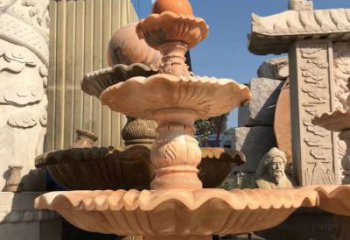 精美多層風水球噴泉石雕晚霞紅藝術裝置