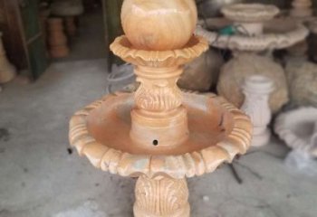 經典中式風水球,黃銹巖浮雕噴泉水