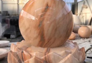 紅色晚霞風水球石雕景觀噴泉,點亮小區美景