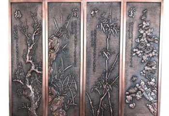 梅蘭竹菊紫銅浮雕精美茶具