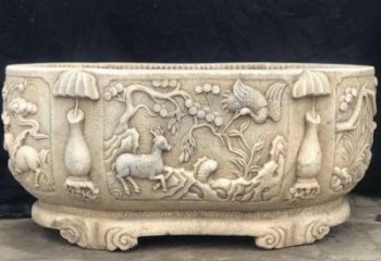 經典雅致的庭院景觀精致理石浮雕水缸雕塑
