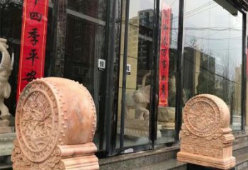 天然石材浮雕太平吉祥抱鼓石,點綴別墅門口