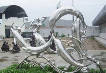 不銹鋼海豚雕塑,為戶外游泳添彩