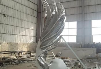不銹鋼鏡面園林水景翅膀抽象雕塑