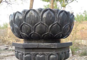 半邊流水紅石雕蓮花花盆雕塑——把親近自然的美景帶回家