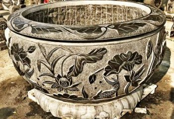 精美大理石浮雕蓮花缸,現代庭院裝飾雕塑