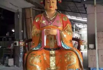 王母娘娘純銅雕塑,屹立于寺廟之中