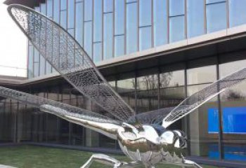 不銹鋼蜻蜓雕塑,鏡面反射大學(xué)花園抽象風(fēng)格