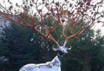 品質生活,不銹鋼鏡面創意樹枝鹿園林房產景觀雕塑
