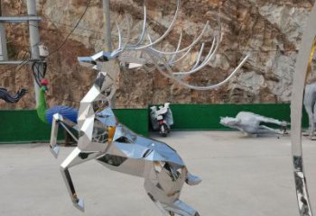 不銹鋼幾何雕塑梅花鹿鏡面跳躍公園裝飾品