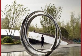 大型不銹鋼鏡面圓環擺件,點綴園林環境