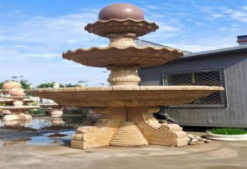 精美多層風水球噴泉石雕晚霞紅藝術裝置