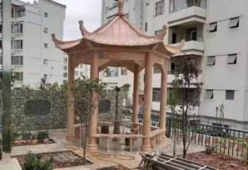 晚霞色石雕大理石涼亭,點綴園林美景