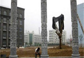 漢白玉浮雕龍盤石柱子在寺院門口擺放的藝術之美