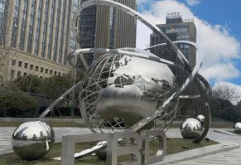 湘云不銹鋼創(chuàng)意鏤空環(huán)繞地球儀雕塑