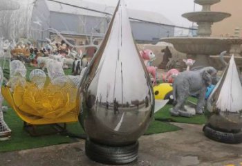 夜晚發光不銹鋼鏤空水滴雕塑