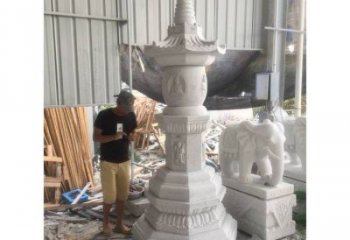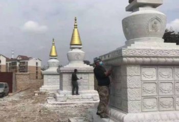 舍利塔是宗教寺廟中經(jīng)常出現(xiàn)的裝置,它有著悠久的歷史,歷史上有許多大型石雕舍利塔,以其真實(shí)的形象展現(xiàn)出宗教的崇高、神圣和宏偉。