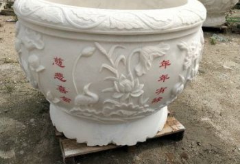 漢白玉石雕龍浮雕水缸雕塑,為庭院增添優(yōu)雅氣息