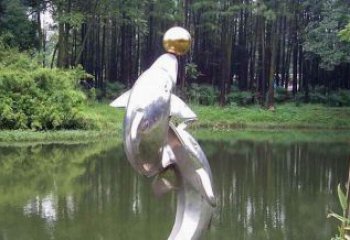 高端不銹鋼海豚雕塑,為售樓部門口增添完美視覺
